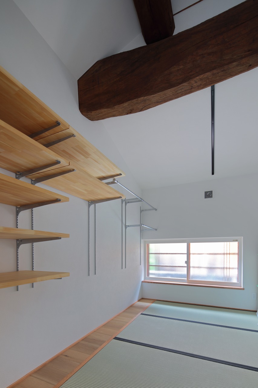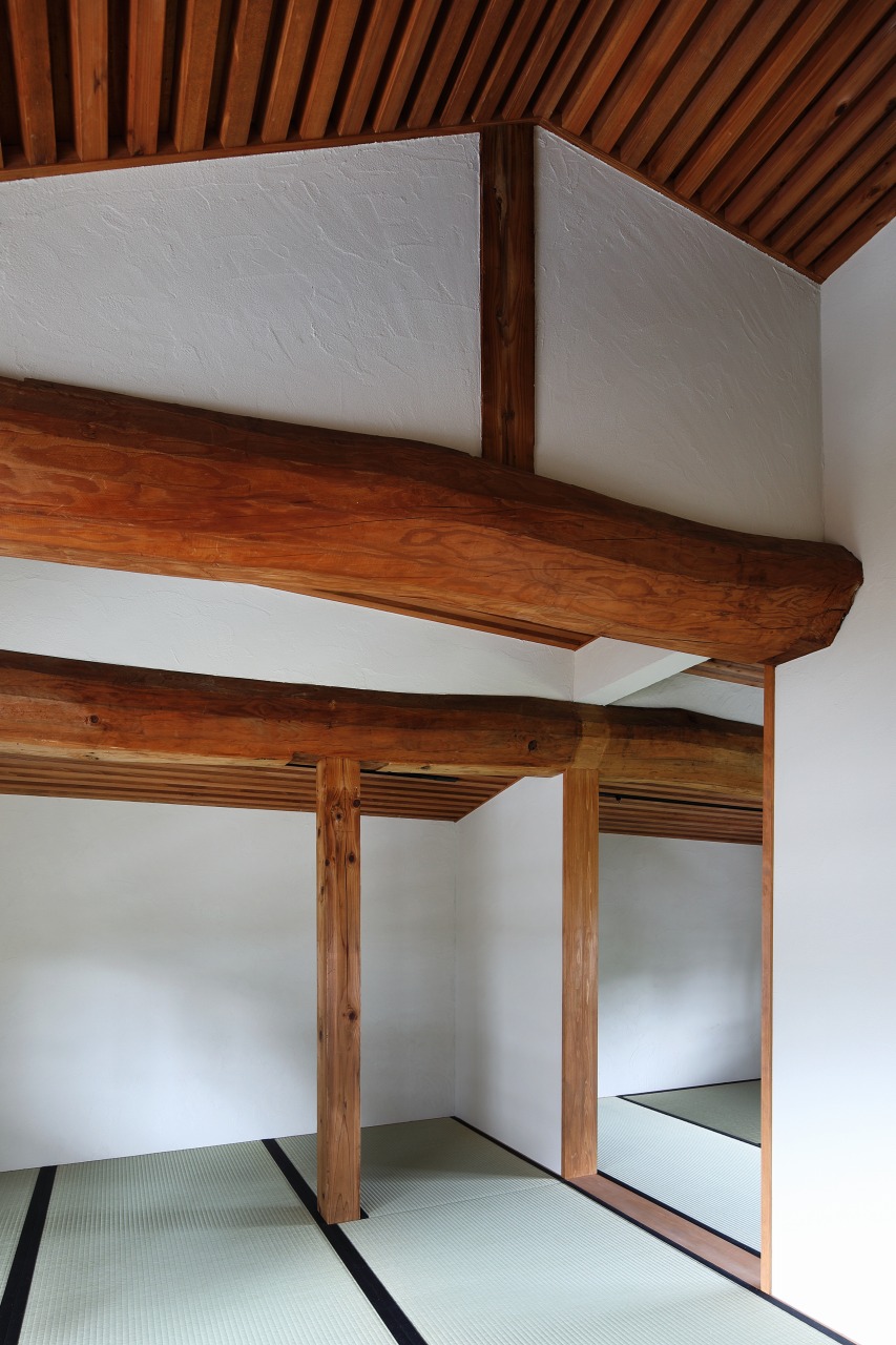 昔ながらの古民家の趣を残しつつ、梁や扉といった歴史ある部材をそのまま生かし、天井を取り払うことで、家族の気配をいつでも感じられる開放的な空間へと生まれ変わりました。