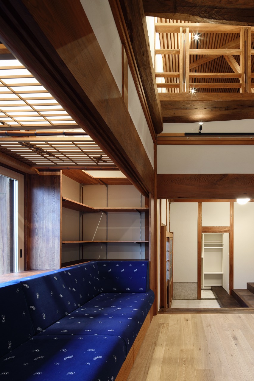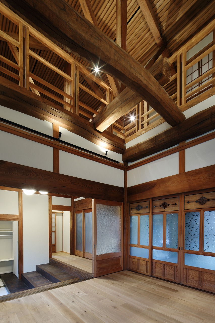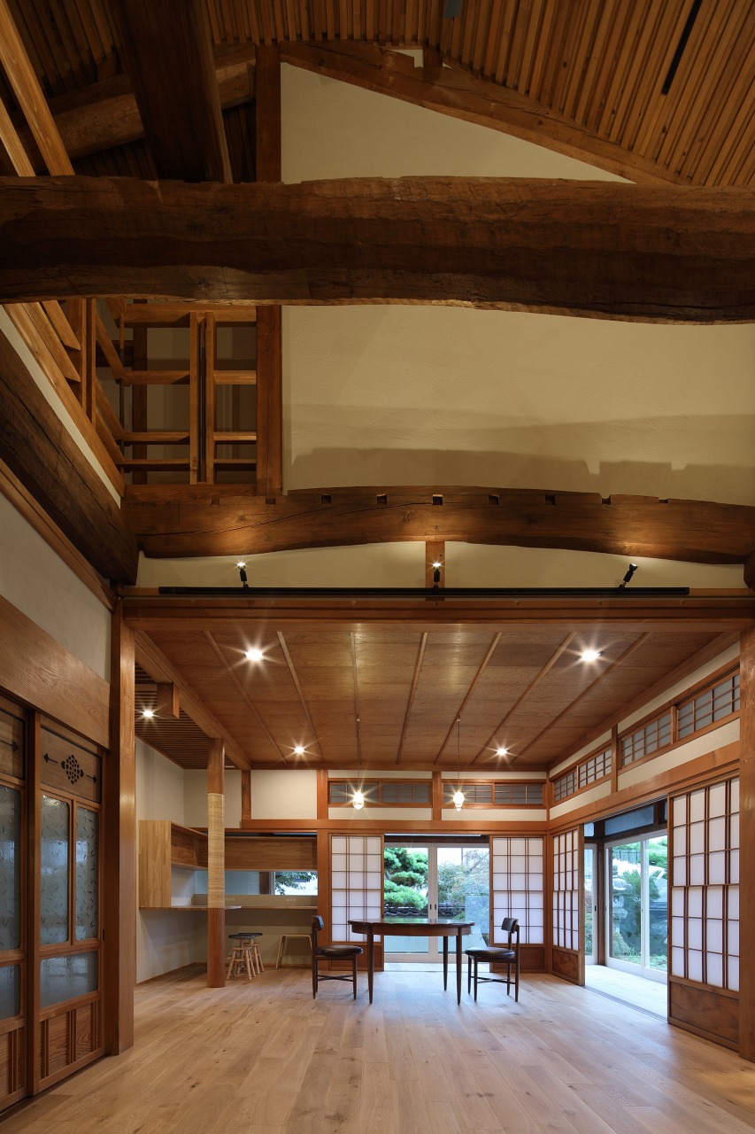 昔ながらの古民家の趣を残しつつ、梁や扉といった歴史ある部材をそのまま生かし、天井を取り払うことで、家族の気配をいつでも感じられる開放的な空間へと生まれ変わりました。