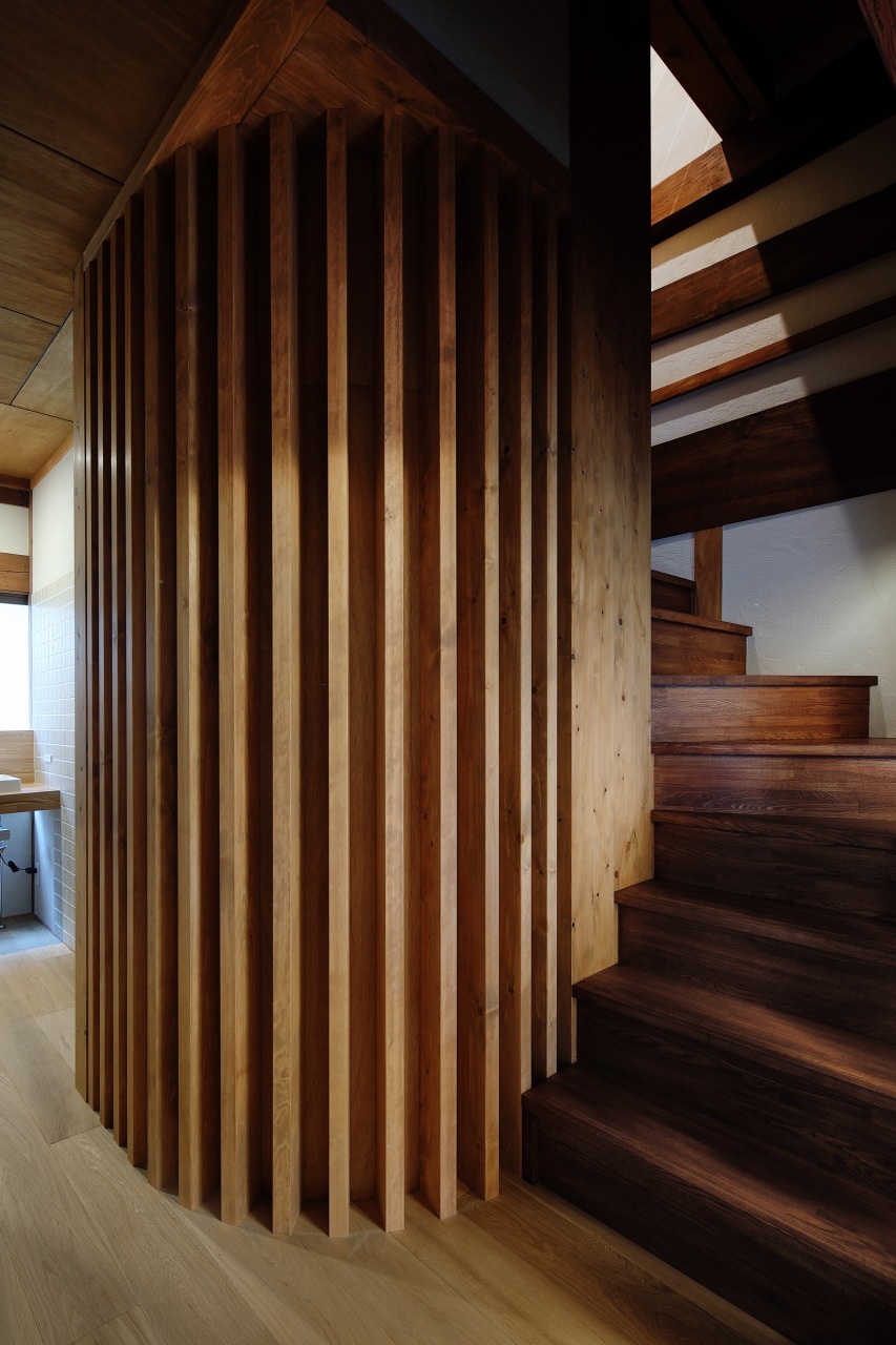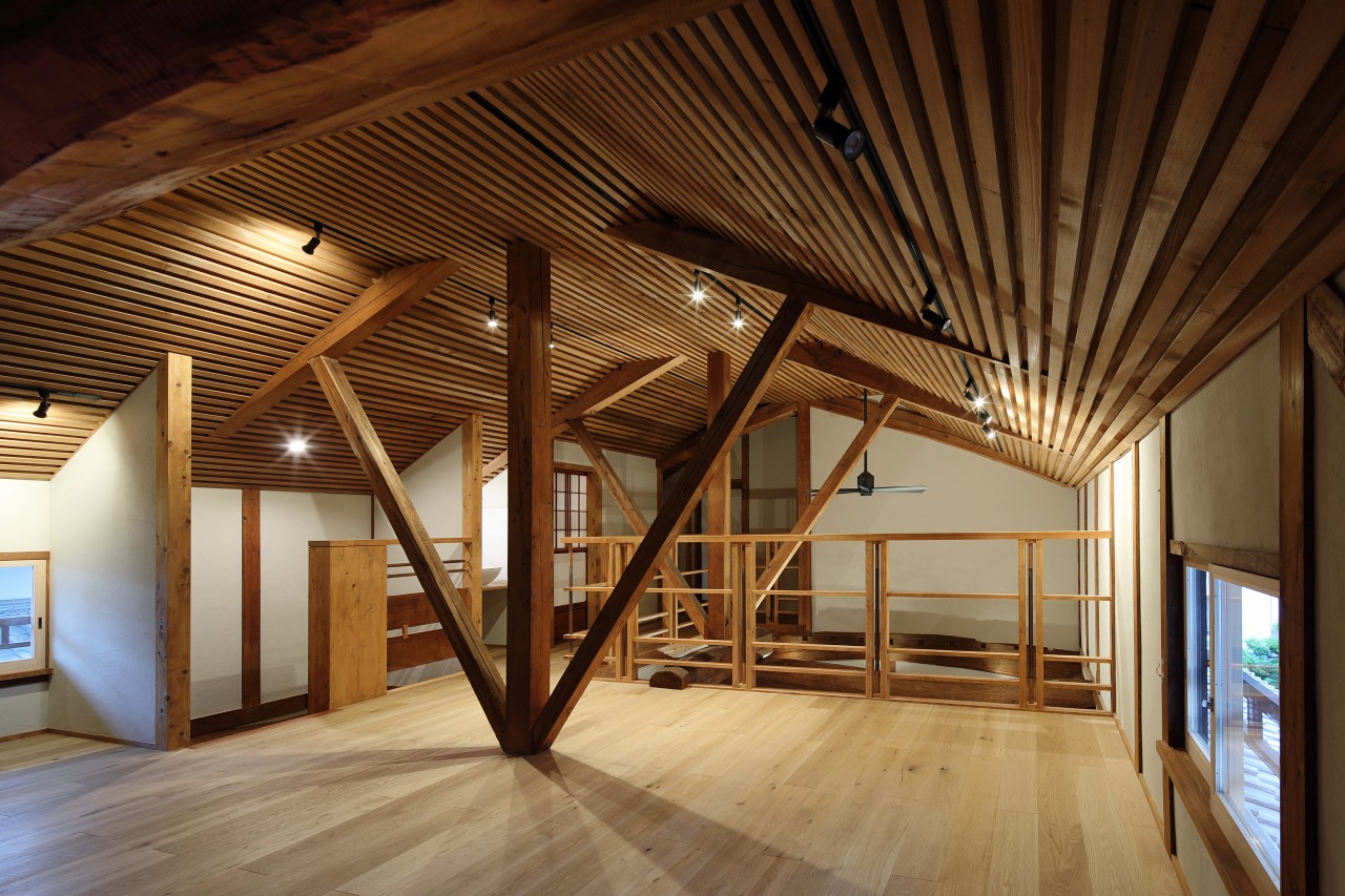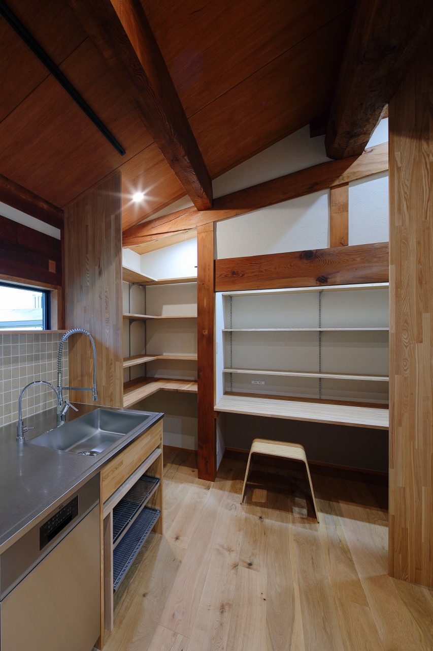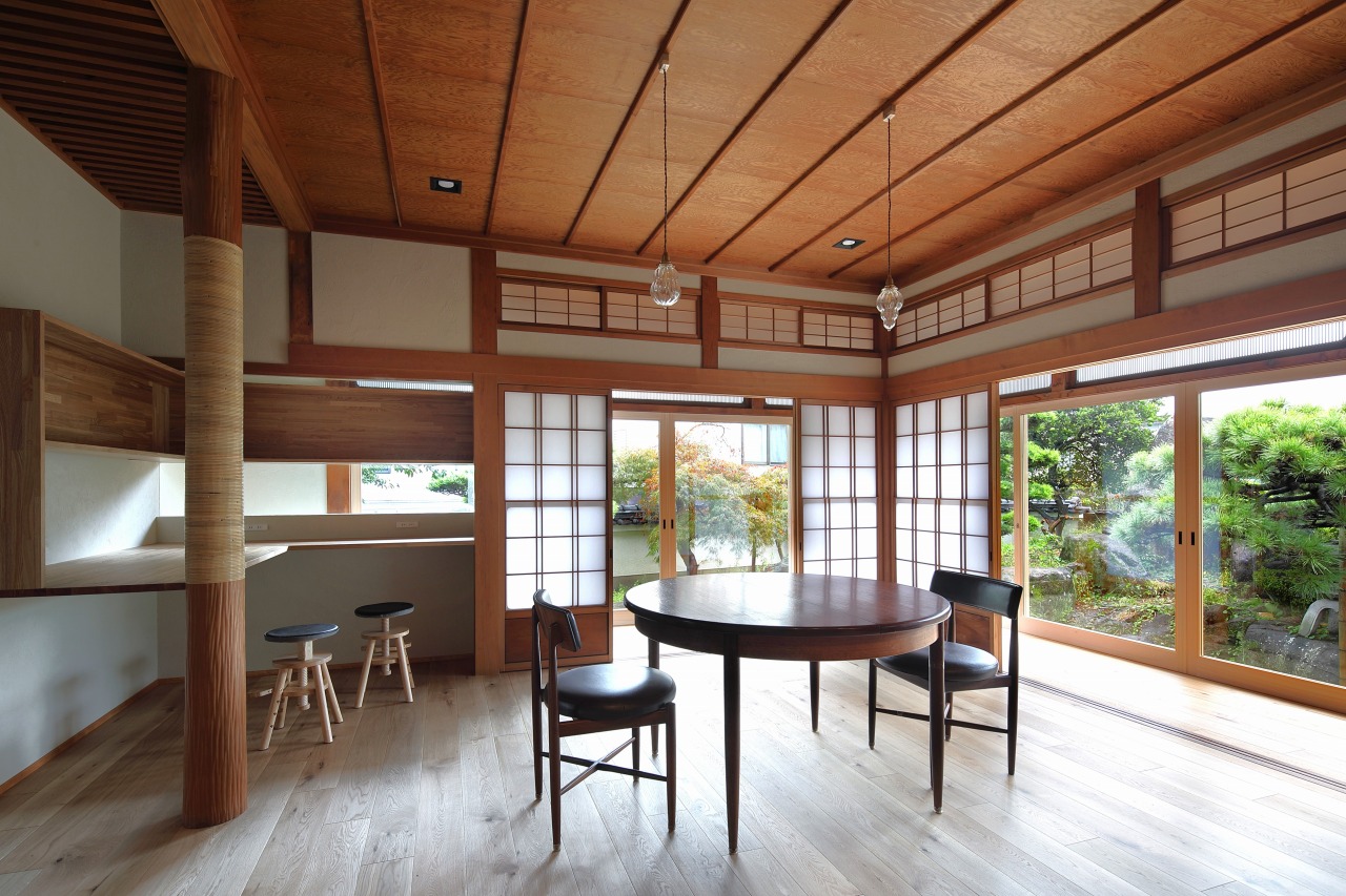 昔ながらの古民家の趣を残しつつ、梁や扉といった歴史ある部材をそのまま生かし、天井を取り払うことで、家族の気配をいつでも感じられる開放的な空間へと生まれ変わりました。