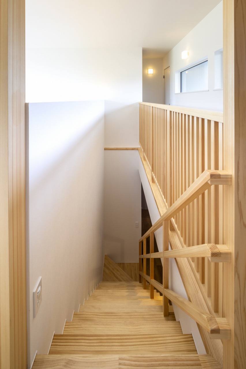 大きな窓から差し込む光と、縦格子がつくる美しい陰影がリビングを彩ります。